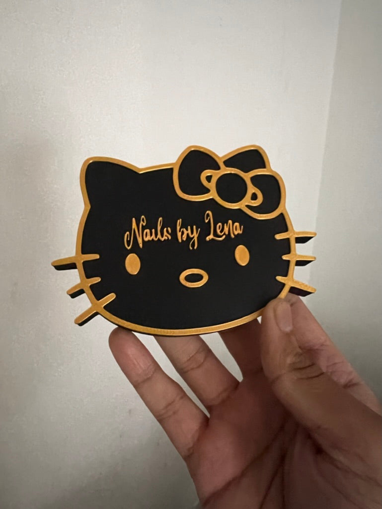 - Personalized Design: Each stand is custom-made with your business name, ensuring it reflects your unique brand. Choose from a variety of designs including classic circular stands with elegant text or playful, themed designs like our Hello Kitty-inspired stand.